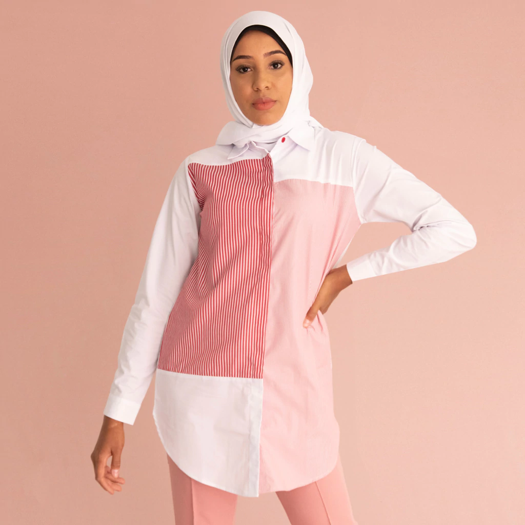 A CAMISÃO MIX é uma chemise alongada, confeccionada em tecido de tricoline com elastano, que possui um ar descontraído, moderno e cosmopolita, dado pelos recortes e listras assimétricos. Aposte em looks mais casuais com tênis ou sapatilha ou em looks mais elegantes com salto alto.